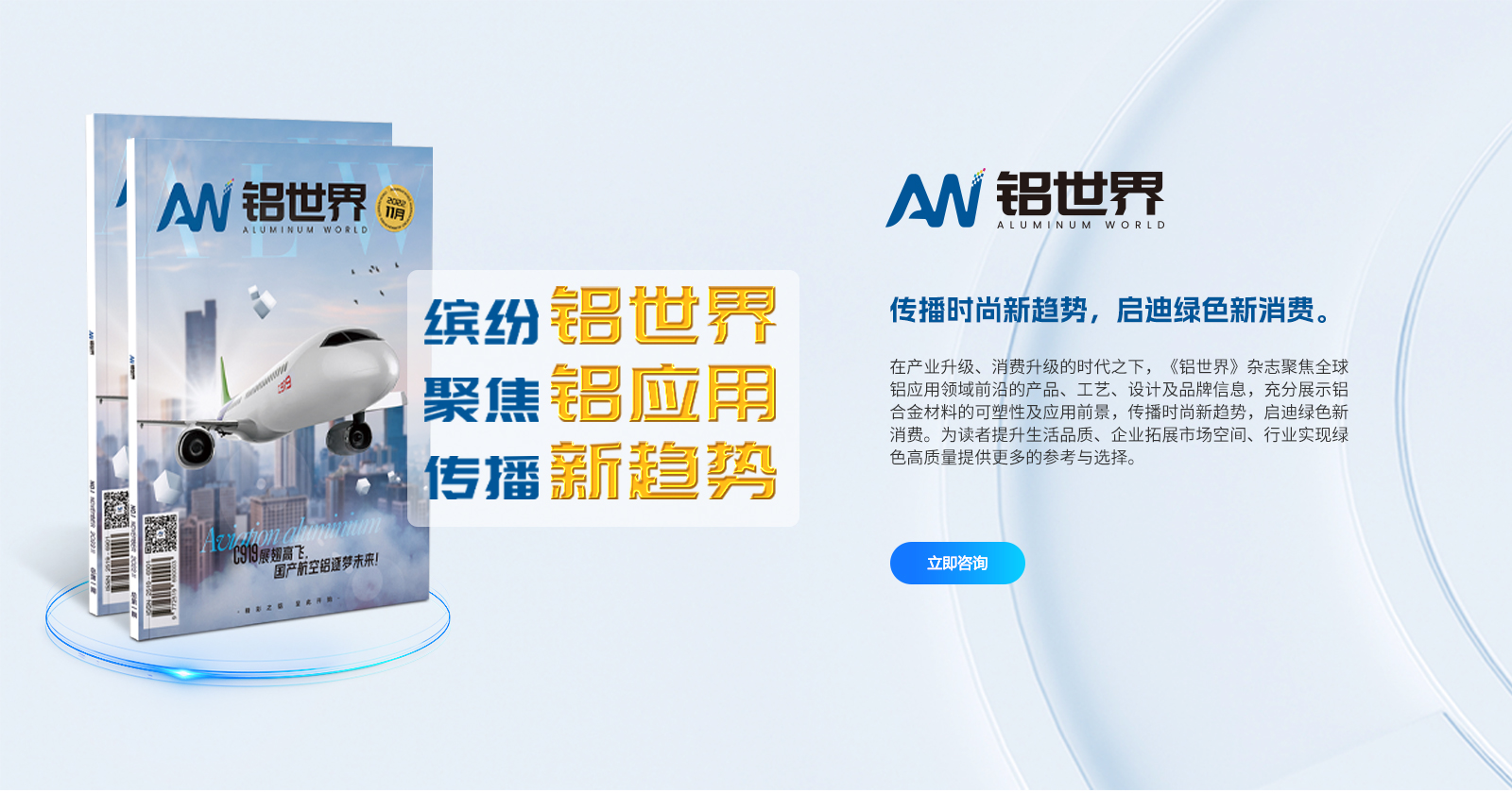 鋁加網(www.albiz.cn)是聞名鋁加工行業的垂直門戶網站,云聚鋁業新生態,構建鋁業新場景,以albiz.cn 網站為核心,以移動云端、鋁加工微信、鋁加網視頻號、《鋁型材專刊》和《鋁世界》雜志為載體,成為了鋁加工行業資訊和精準傳播的首選傳媒。鋁加網,采集和發布全行業信息資訊,提供線上展覽、在線直播、短視頻、品牌策劃、品牌運營、品牌傳播等全方位的專業服務。